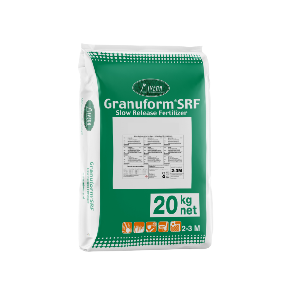 Granuform® SRF on korkealaatuinen hitaasti vapautuva lannoite (SRF), joka on kehitetty erityisesti golfviheriöille, urheilukentille ja muille hienonurmen sovelluksille. Metyleeniureaan (MU), pitkäkestoiseen typen lähteeseen, perustuva lannoite vapauttaa ravinteita vähitellen maaperän lämpötilan, kosteuden, pH:n ja mikrobitoiminnan mukaan. Tämä varmistaa tasaisen kasvun ilman ravinnepiikkejä ja tarjoaa tasaisen ravinteen 2–3 kuukauden ajan.
