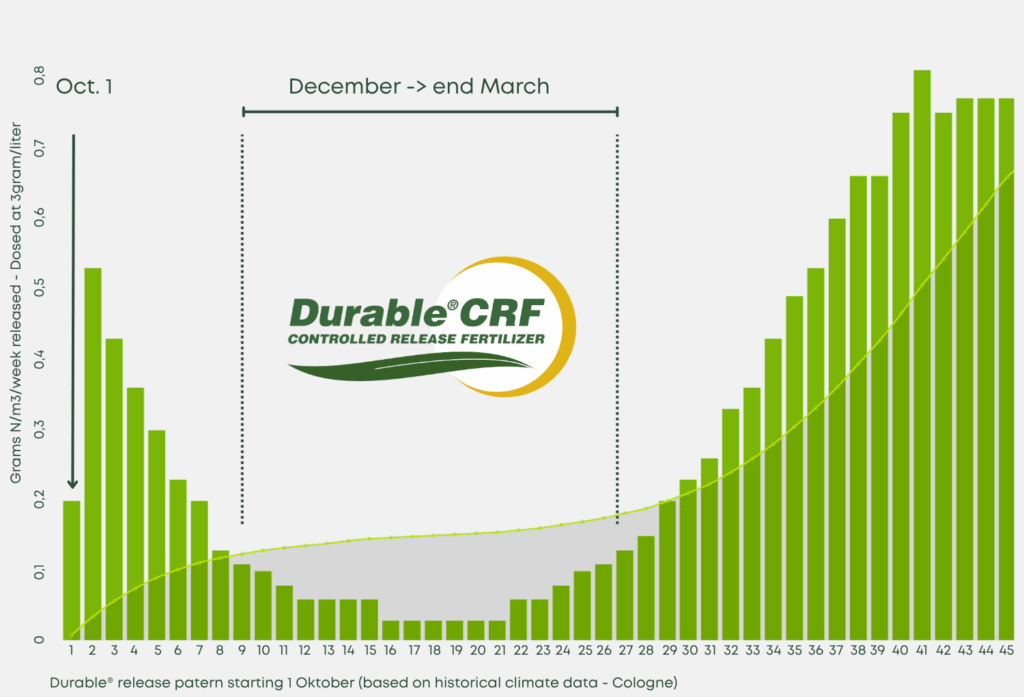 Then, as soon as the soil warms again, the release rate accelerates in sync with turf demand.